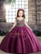 Customized Fuchsia Ball Gowns Straps Sleeveless Tulle Floor Length Lace Up Beading Kids Formal Wear