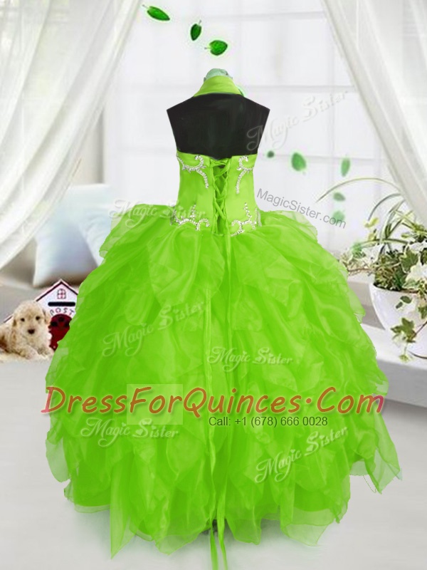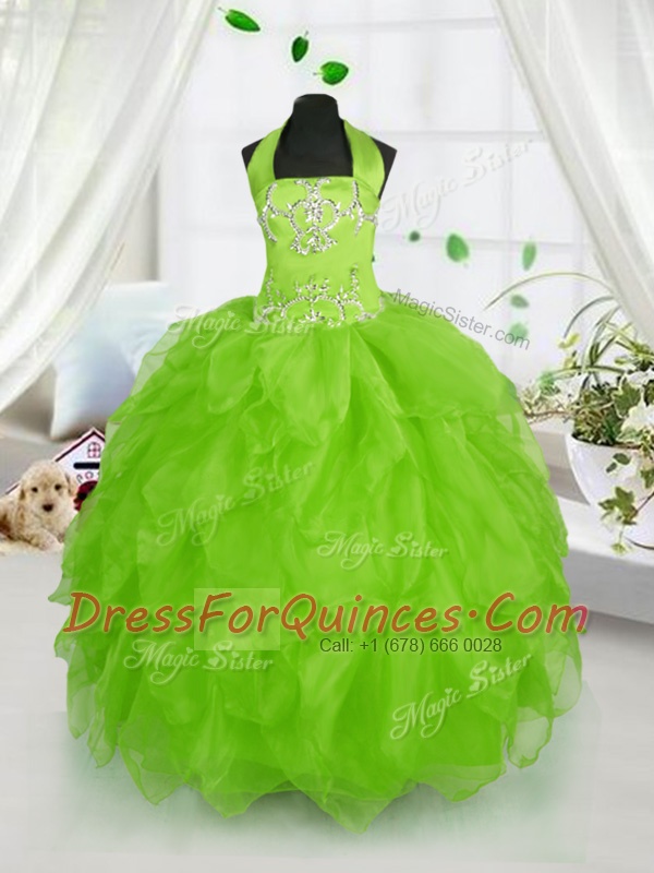 Customized Organza Halter Top Sleeveless Lace Up Beading and Ruffles Flower Girl Dresses in