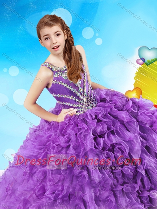 Discount Beaded and Ruffled Mini Quinceanera Dress with Scoop