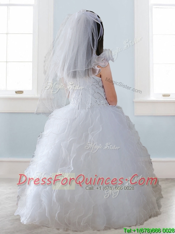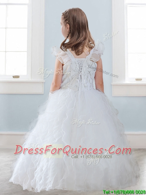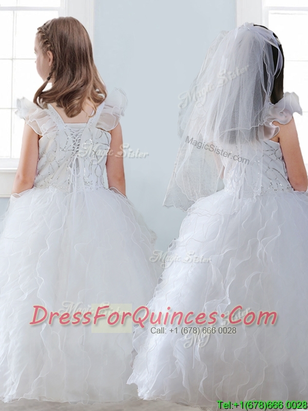 Discount Organza Straps Mini Quinceanera Dresses with Sequins and Ruffles