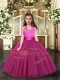 Elegant Floor Length Fuchsia Little Girl Pageant Gowns Halter Top Sleeveless Lace Up