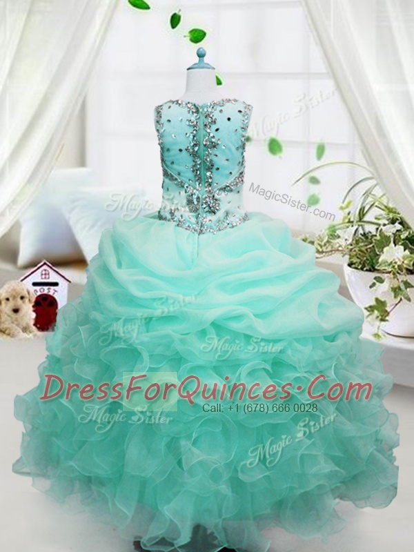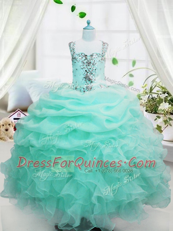 Elegant Pick Ups Floor Length Baby Blue Toddler Flower Girl Dress Straps Sleeveless Lace Up