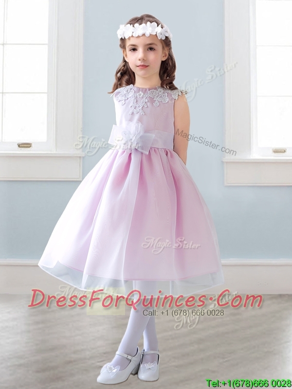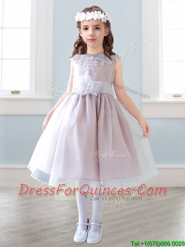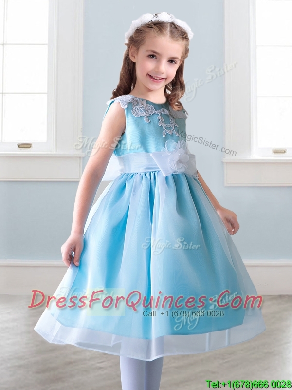 Elegant Scoop Tea Length Mini Quinceanera Dresses with Appliques and Hand Made Flowers
