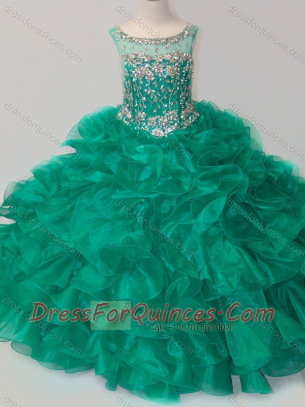 Exquisite Beaded and Ruffled Organza Mini Quinceanera Dress in Green
