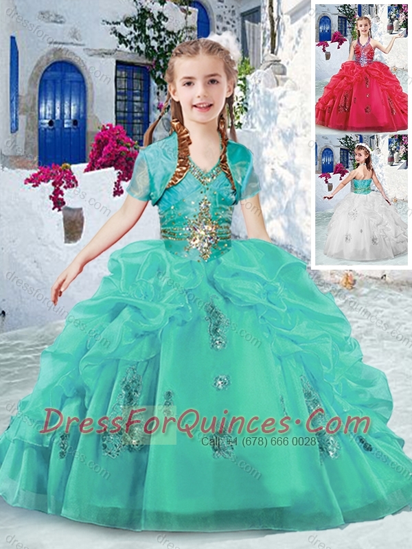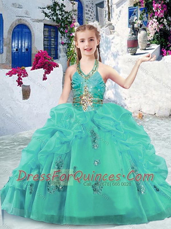Fashionable Halter Top Little Girl Pageant Dresses with Beading and Bubles