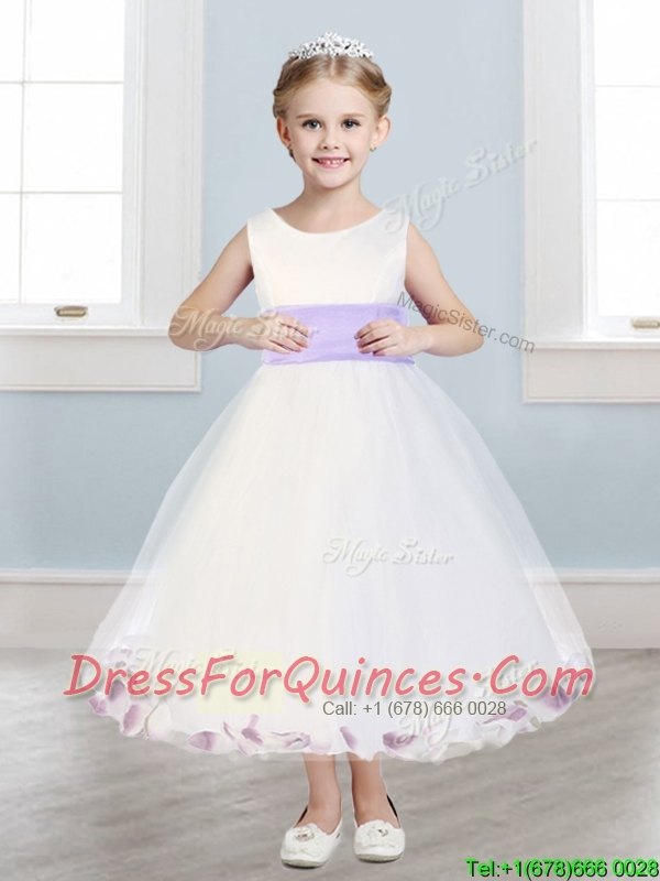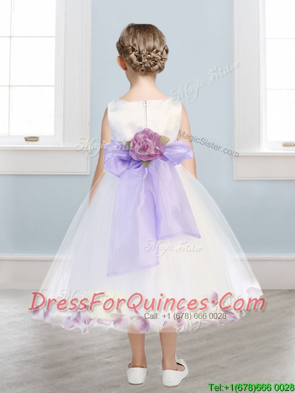 Fashionable Scoop Hand Made Flowers and Appliques Mini Quinceanera Dress in White