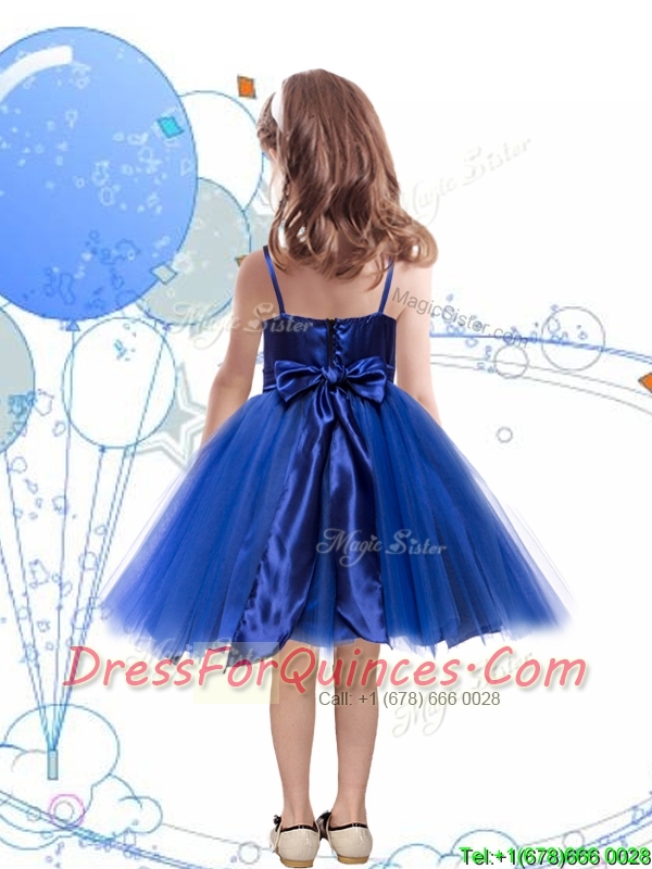 Fashionable Spaghetti Straps Royal Blue Mini Quinceanera Dress with Sashes and Sequins