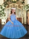 Floor Length Baby Blue Kids Pageant Dress Tulle Sleeveless Beading