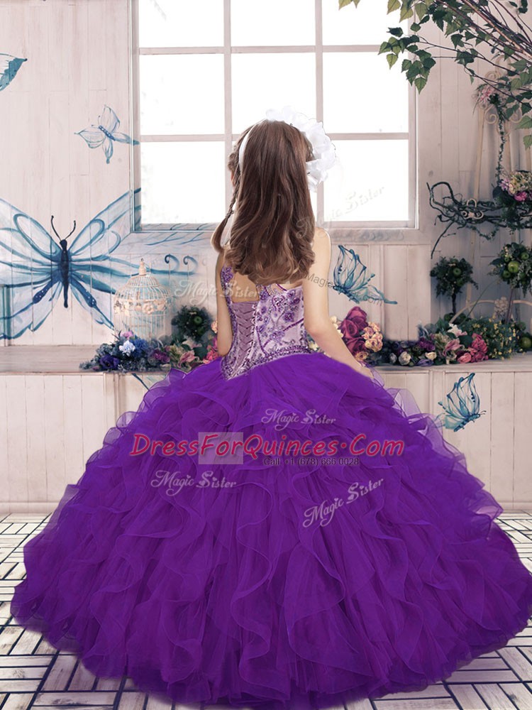 Floor Length Ball Gowns Sleeveless Purple Girls Pageant Dresses Lace Up