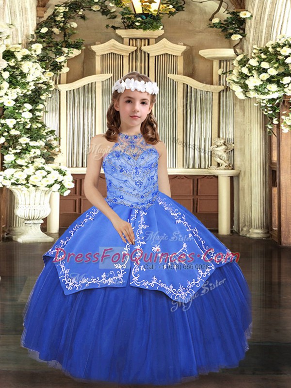 Floor Length Ball Gowns Sleeveless Royal Blue Kids Pageant Dress Lace Up
