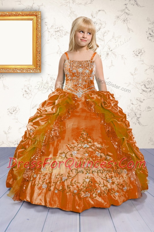 Free and Easy Orange Lace Up Spaghetti Straps Beading and Appliques and Pick Ups Flower Girl Dresses for Less Satin Sleeveless
