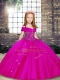 Fuchsia Lace Up Straps Beading Little Girls Pageant Dress Tulle Sleeveless