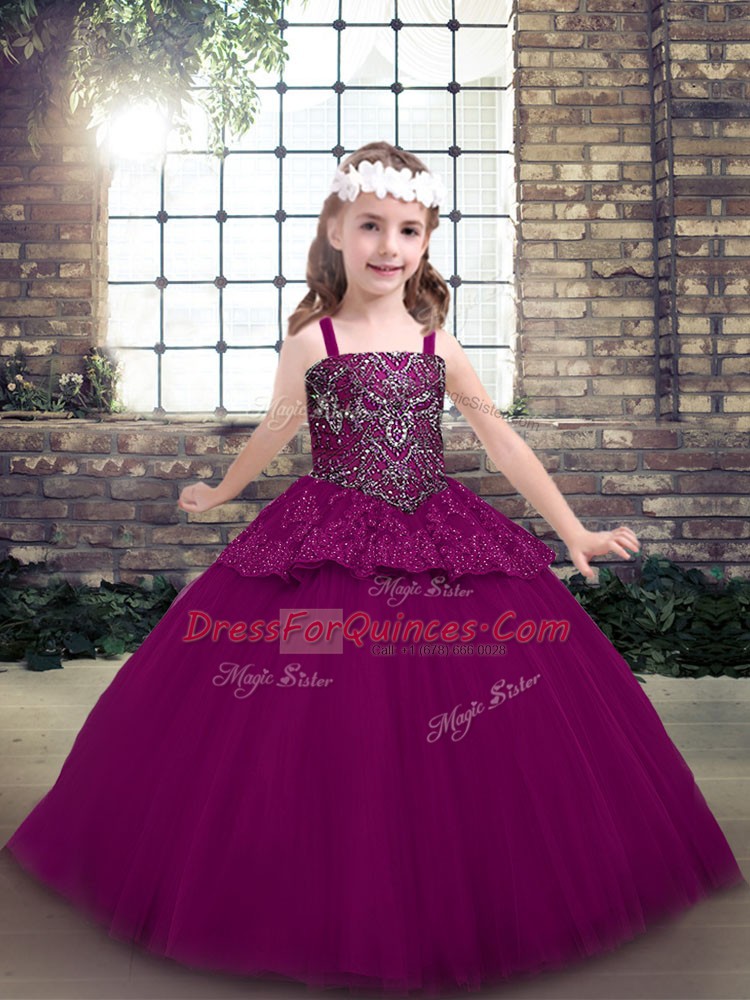 Fuchsia Sleeveless Beading Floor Length Kids Formal Wear