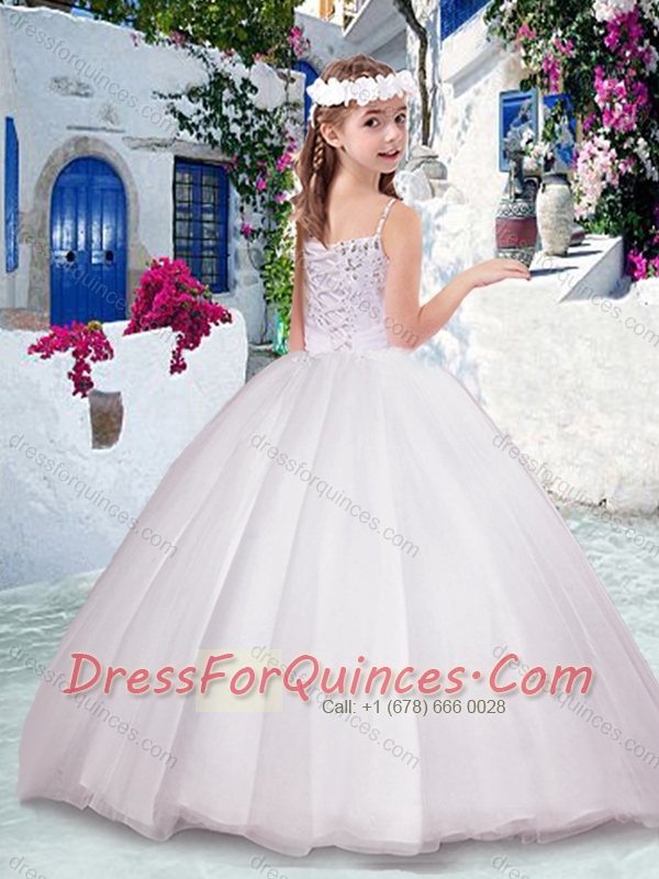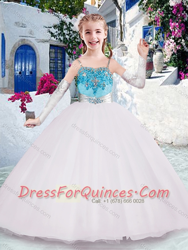 Gorgeous Spaghetti Straps Flower Girl Dresses with Appliques and Beading