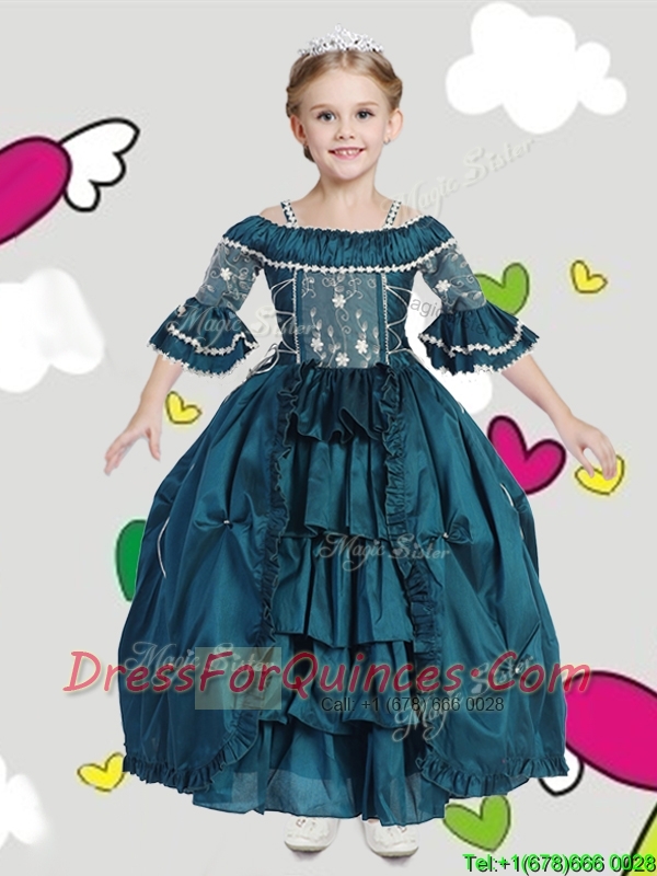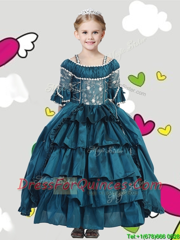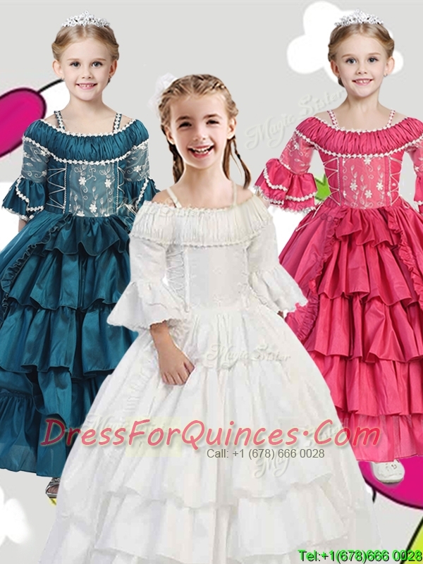 Gorgeous Spaghetti Straps Three Fourth Length Sleeves Mini Quinceanera Dresses with Lace and Ruffled Layers