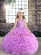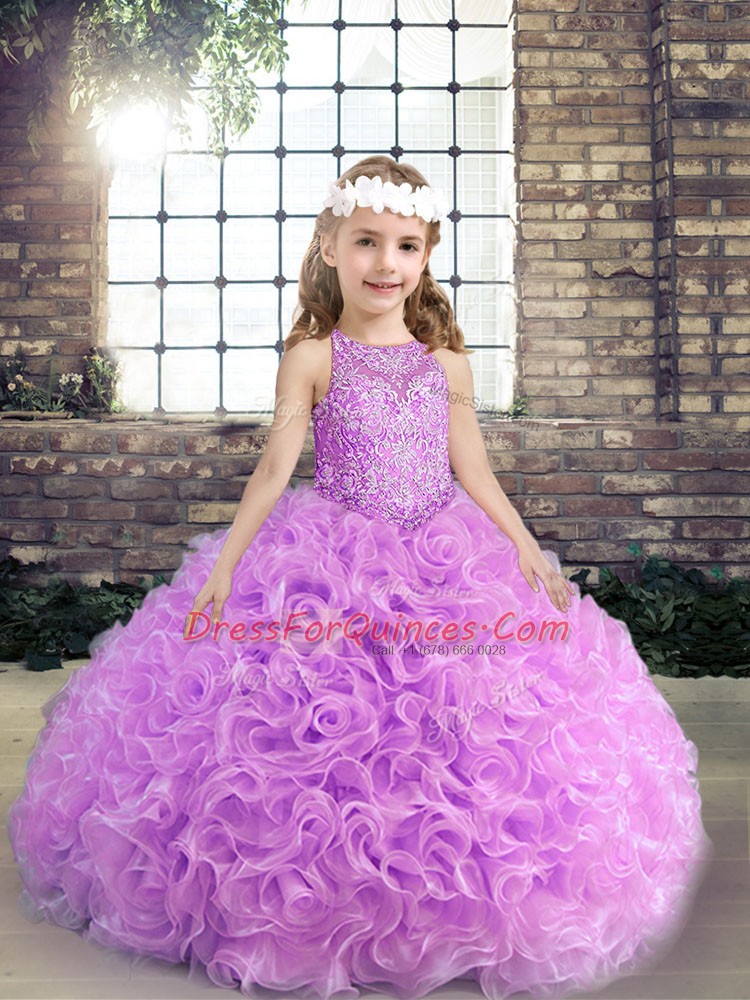 Great Sleeveless Floor Length Beading Lace Up Kids Pageant Dress with Lilac