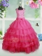 Halter Top Ruffled Floor Length Ball Gowns Sleeveless Hot Pink Flower Girl Dress Zipper