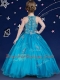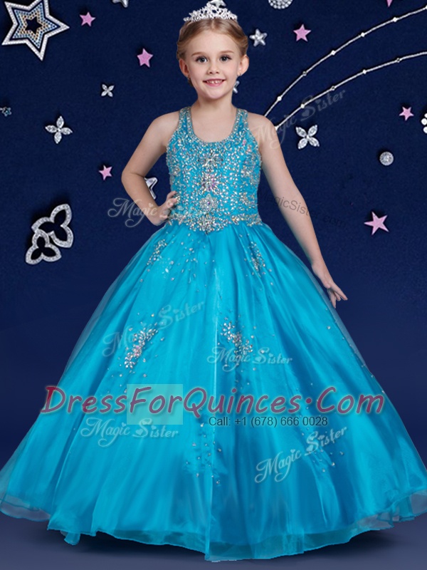High Quality Blue Flower Girl Dresses Quinceanera and Wedding Party and For with Beading Scoop Sleeveless Zipper