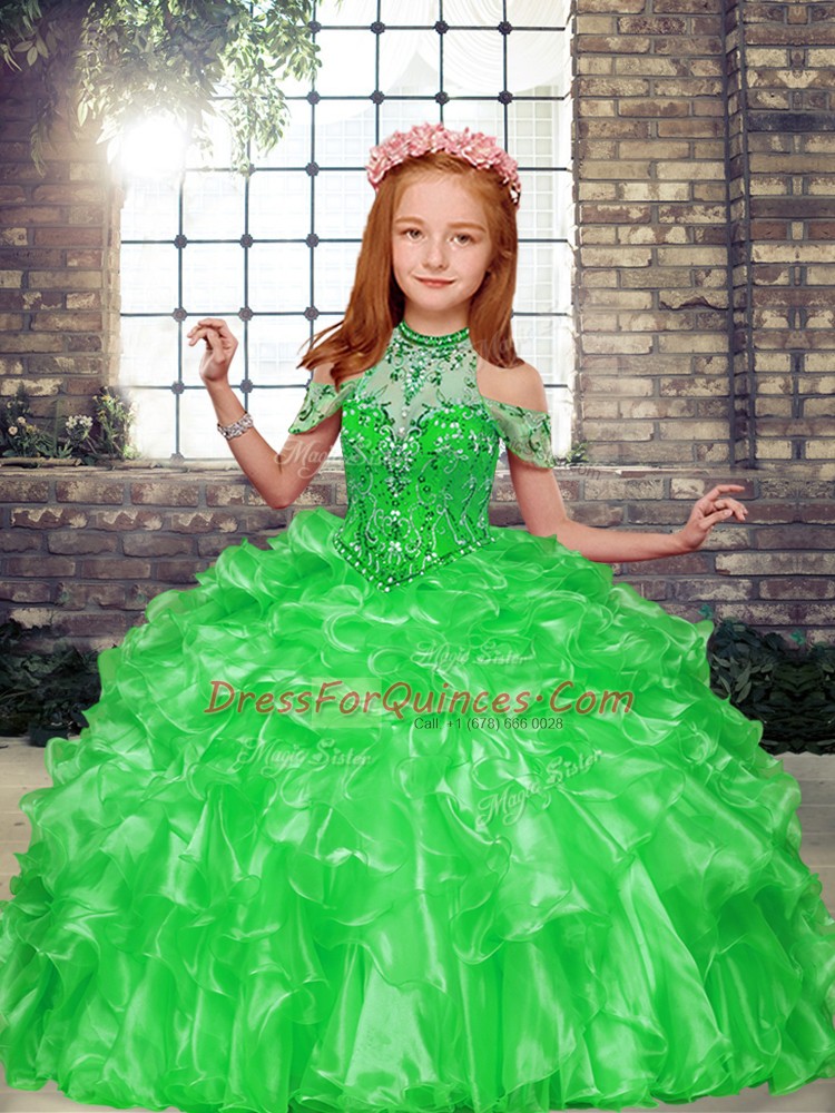 High-neck Neckline Beading Pageant Gowns For Girls Sleeveless Lace Up