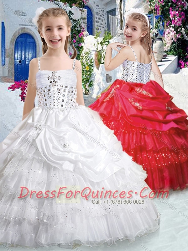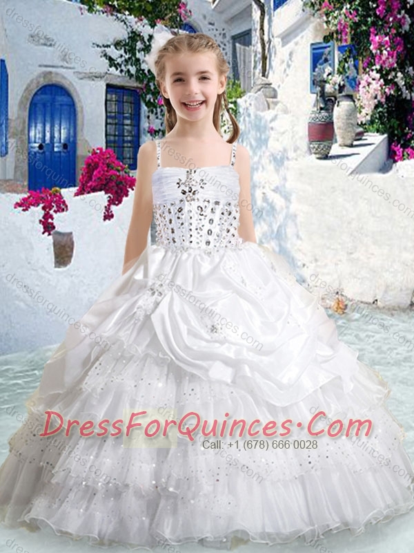 Hot Sale Spaghetti Straps Little Girl Pageant Dresses with Ruffled Layers