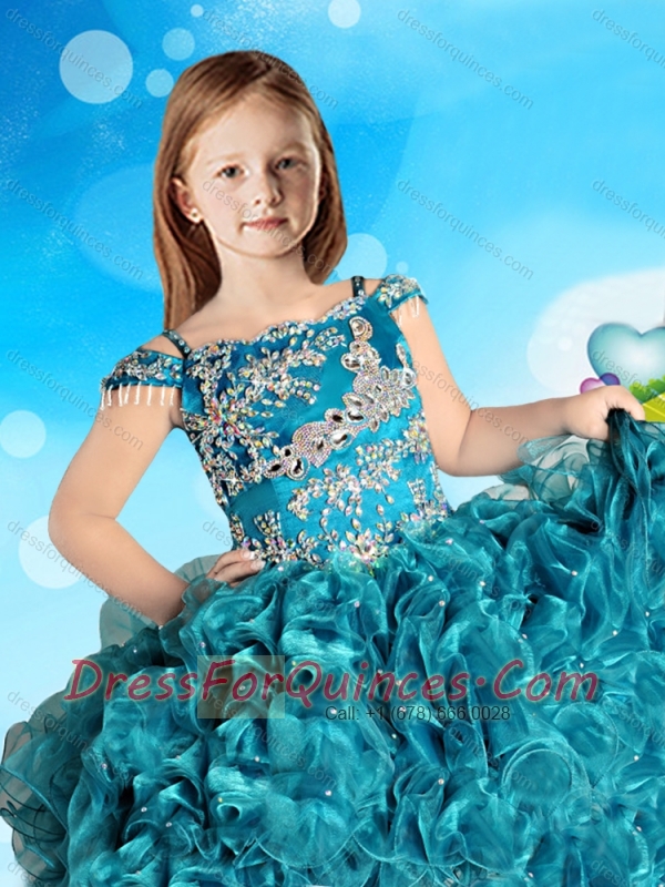 Hot Sale Straps Cap Sleeves Mini Quinceanera Dresses in Teal