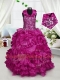 Hot Selling Fuchsia Zipper Halter Top Beading and Ruffles Flower Girl Dress Taffeta Sleeveless