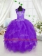 Ideal Purple Halter Top Neckline Appliques and Ruffles Flower Girl Dresses for Less Sleeveless Lace Up