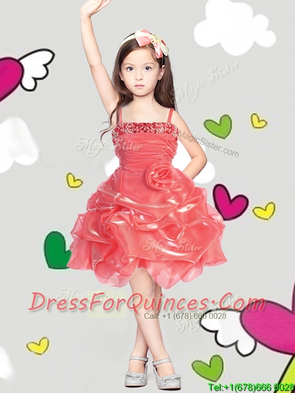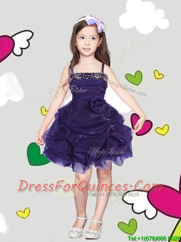 Latest Spaghetti Straps Mini Quinceanera Dress with Hand Made Flowers and Pick Ups