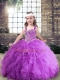 Latest Straps Sleeveless Child Pageant Dress Floor Length Beading and Ruching Purple Tulle