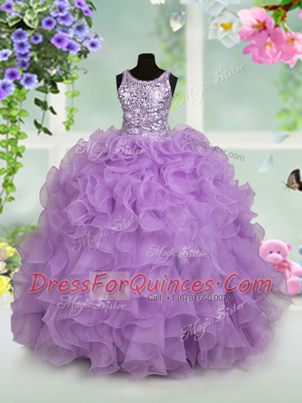 Lavender Flower Girl Dresses for Less Party and Wedding Party and For with Ruffles and Sequins Scoop Sleeveless Zipper
