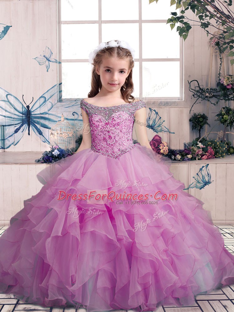 Lilac Sleeveless Beading and Ruffles Floor Length Little Girls Pageant Gowns