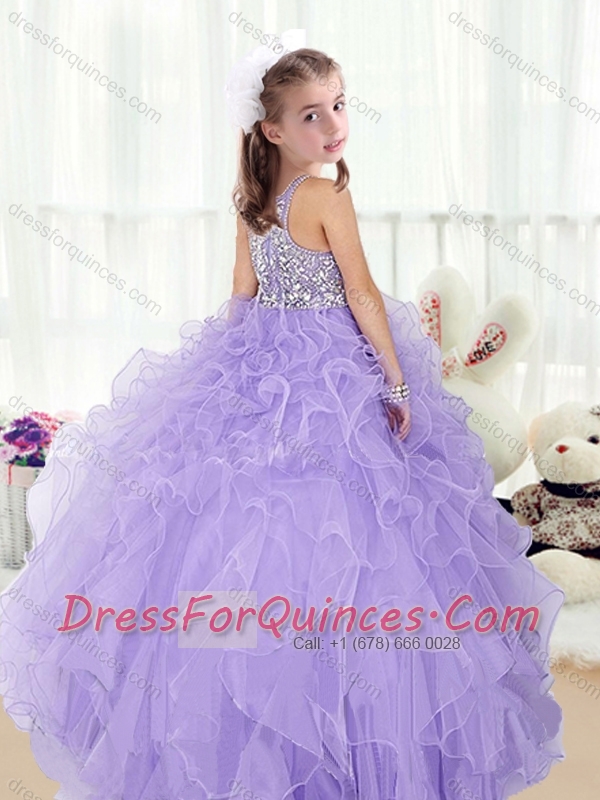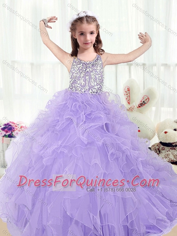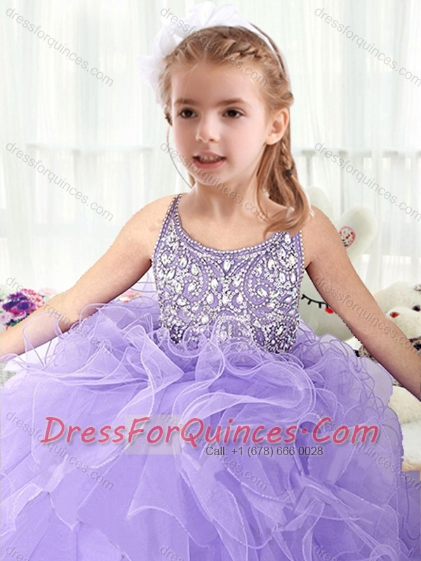 Lovely Scoop Lavender Little Girl Mini Quinceanera Dresses with Beading and Ruffles