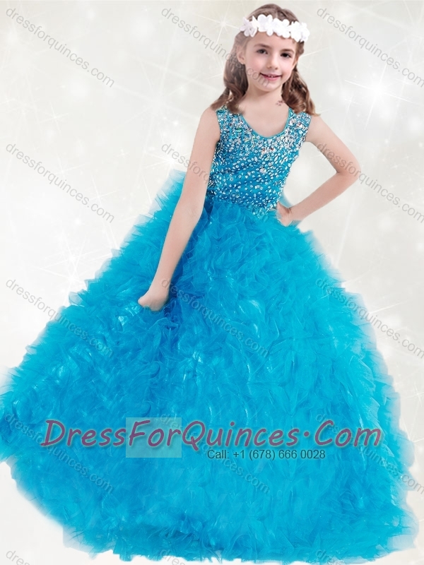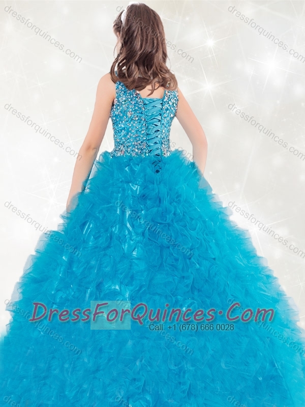 Lovely Scoop Teal Mini Quinceanera Dress with Beading and Ruffles