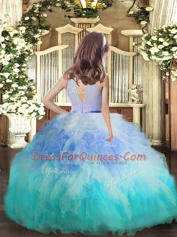 Low Price Multi-color Tulle Backless Kids Formal Wear Sleeveless Floor Length Ruffles