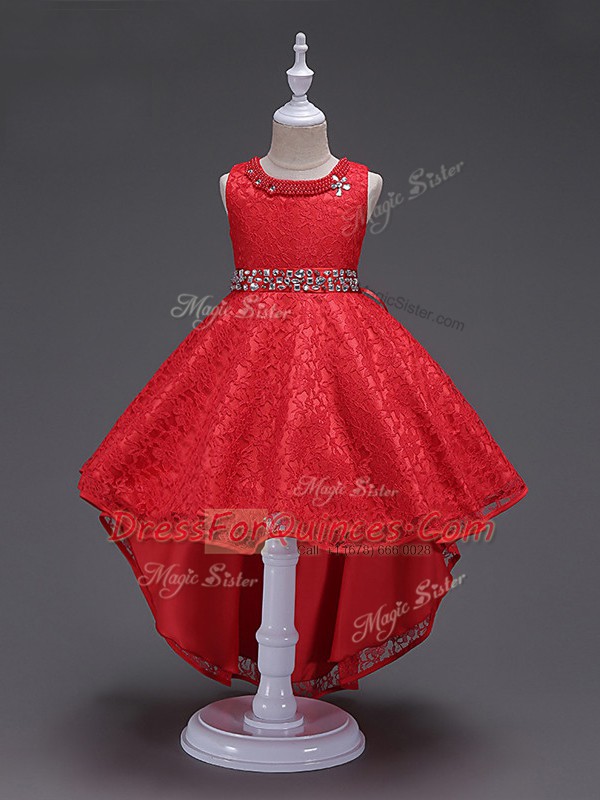 Luxurious High Low A-line Sleeveless Red Kids Pageant Dress Lace Up