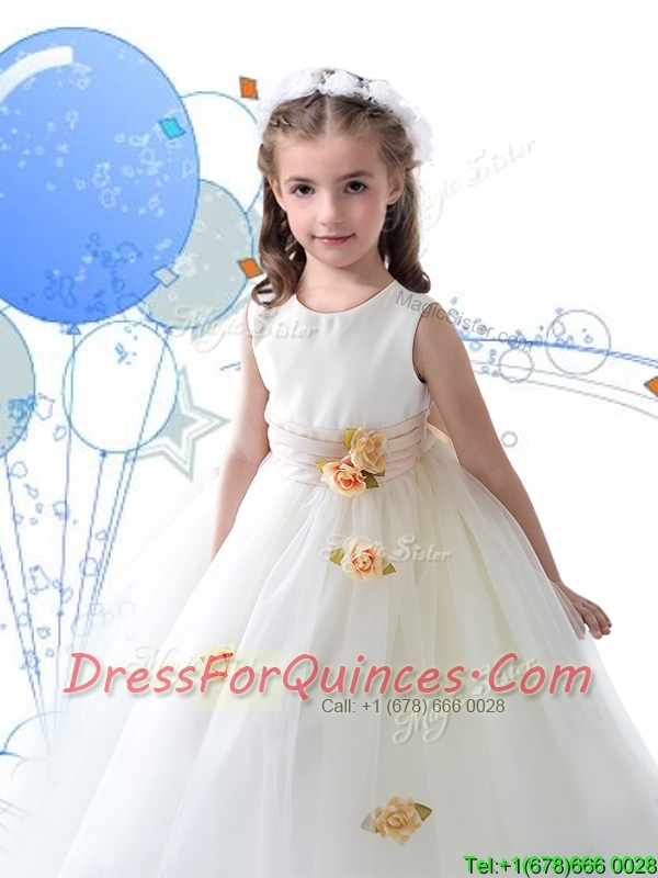 Luxurious Scoop White Mini Quinceanera Dress with Sashes and Hand Made Flowers