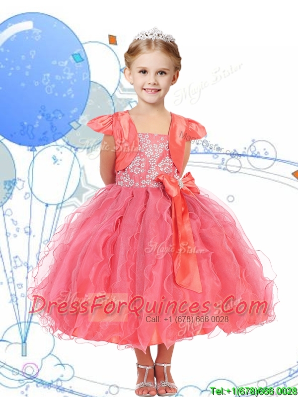 Modest Spaghetti Straps Mini Quinceanera Dress with Beading and Ruffles