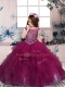 New Arrival Scoop Sleeveless Pageant Gowns For Girls Floor Length Beading and Ruffles Fuchsia Organza