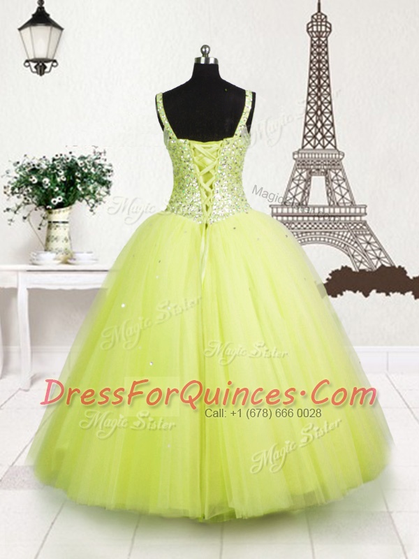 Noble Yellow Green Sleeveless Beading and Sequins Floor Length Flower Girl Dresses