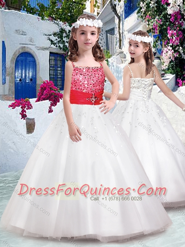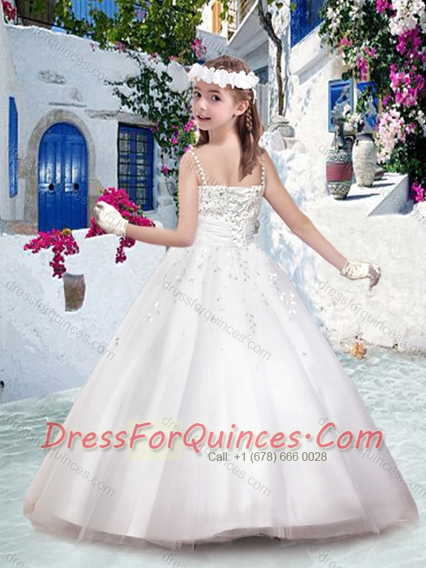 Perfect Spaghetti Straps Flower Girl Dresses with Appliques and Beading