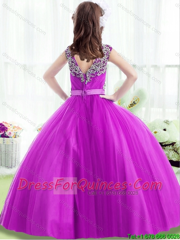 Popular Beading Mini Quinceanera Gowns in Fuchsia for 2016