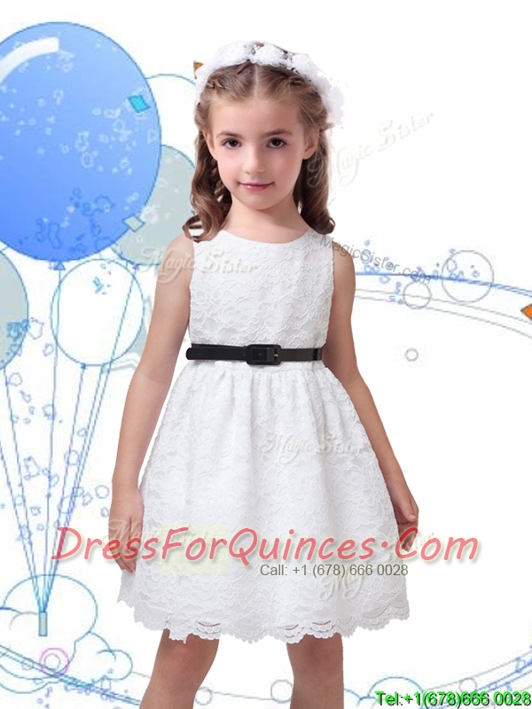 Popular Laced Scoop Mini Quinceanera Dress with Black Sashes