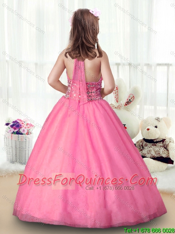 Popular Rose Pink Halter Top Mini Quinceanera Dresses for 2016