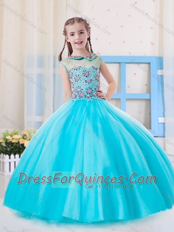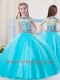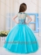 Pretty Ball Gown High Neck Tulle Mini Quinceanera Dress in Aqua Blue