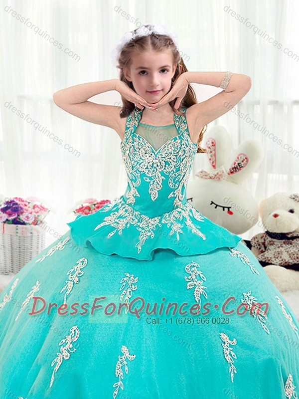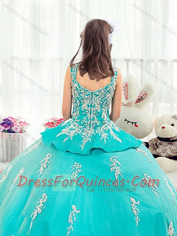 Pretty Straps Turquoise Mini Quinceanera Dresses with Appliques