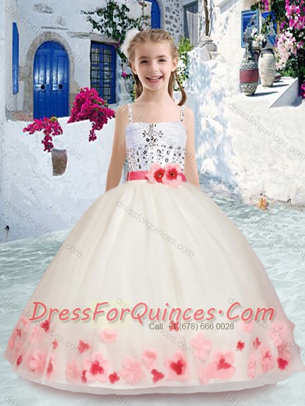 Romantic Spaghetti Straps Little Girl Pageant Dress with Sashes and Beading