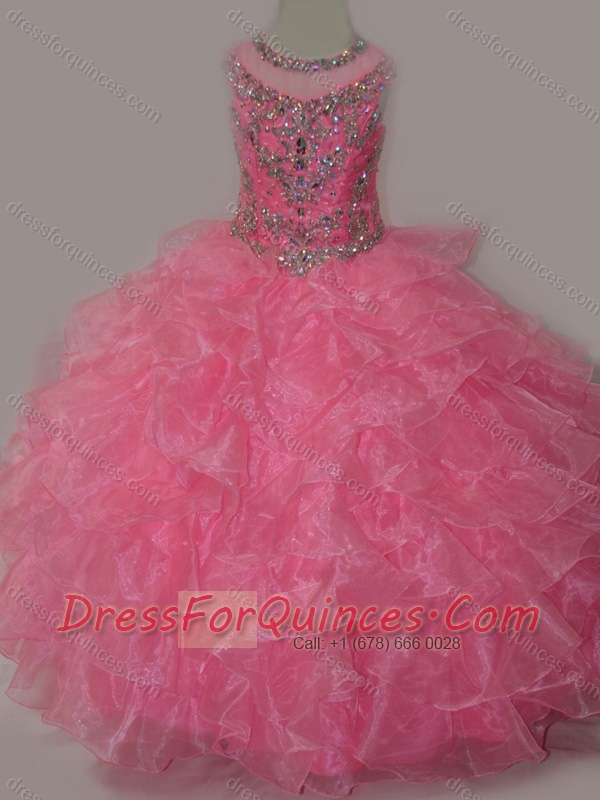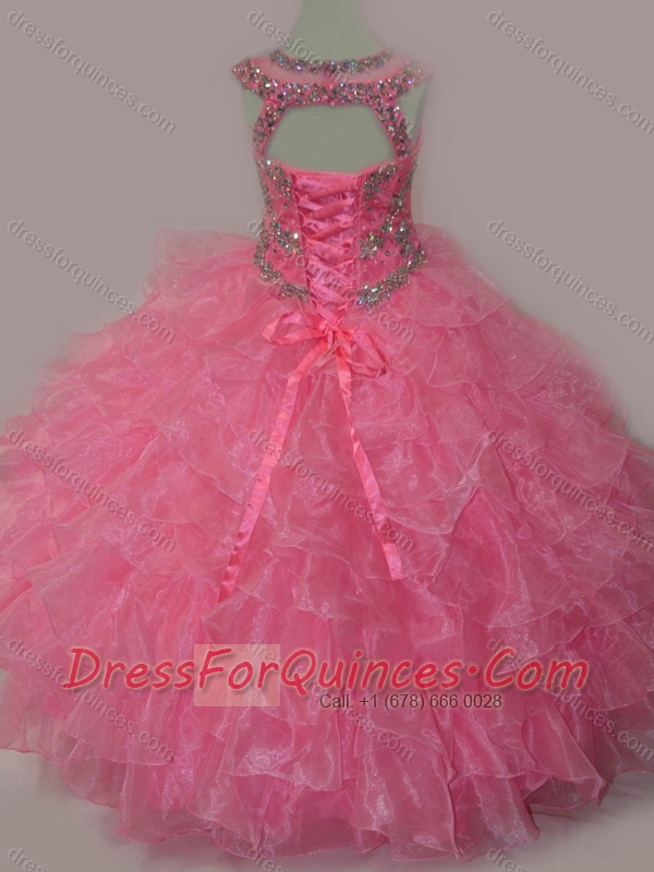 Rose Pink Ball Gown Scoop Beaded Bodice Lace Up Mini Quinceanera Dress