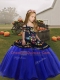 Royal Blue Ball Gowns Spaghetti Straps Sleeveless Organza Floor Length Lace Up Embroidery and Ruffles Child Pageant Dress