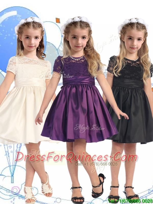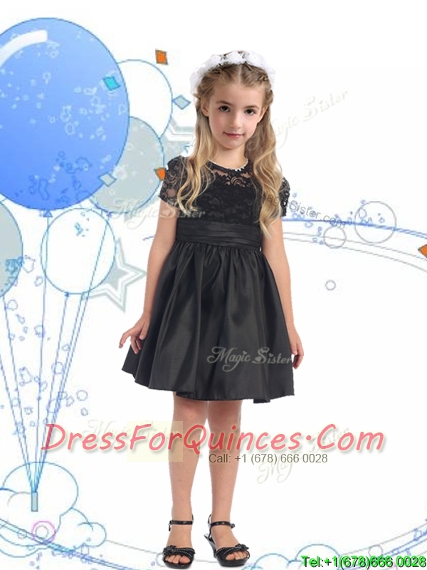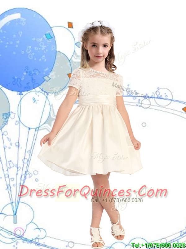 See Through Scoop Short Sleeves Mini Quinceanera Dress with Lace and Belt