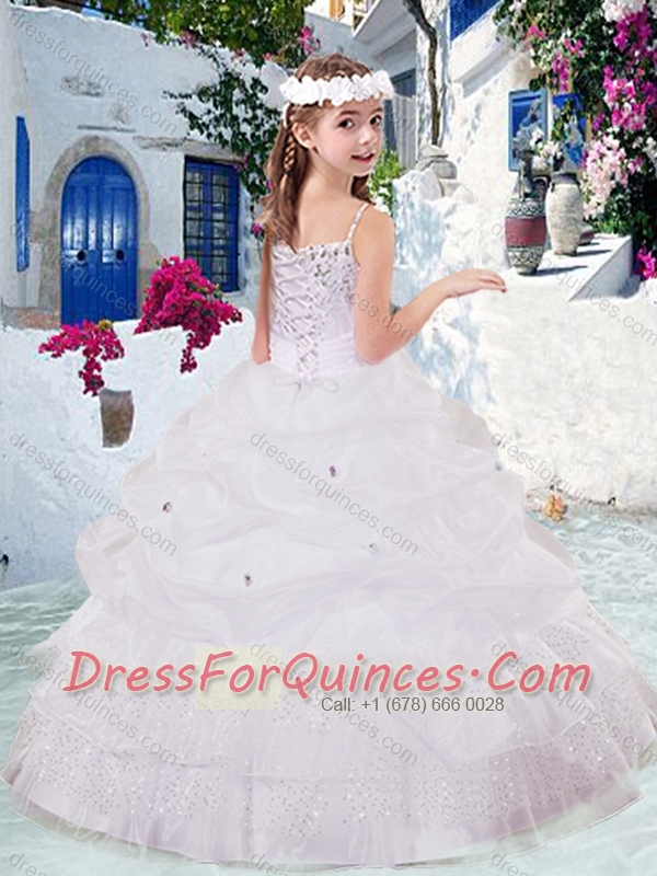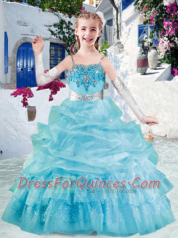 Simple Spaghetti Straps Little Girl Pageant Dresses with Appliques and Bubles